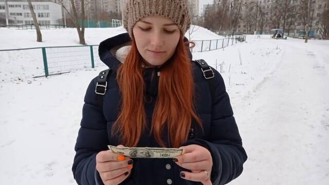 Рыжая давалка из-за денег трахнулась с незнакомцем